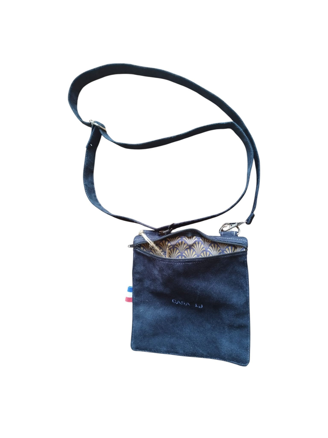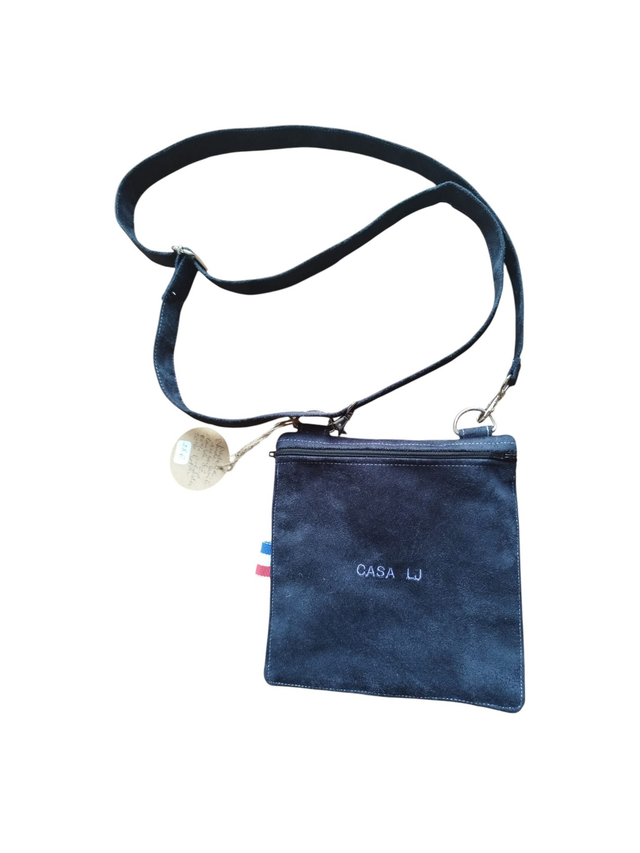 Grande pochette carrée porte téléphone en suédine Alaska double face zippée avec broderie C'EST PAS FAUX!