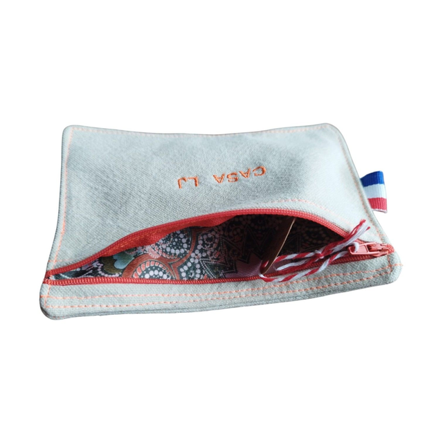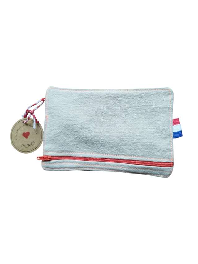 Un adorable porte monnaie en coton épais écru qui peut aussi prendre les cartes et clefs,