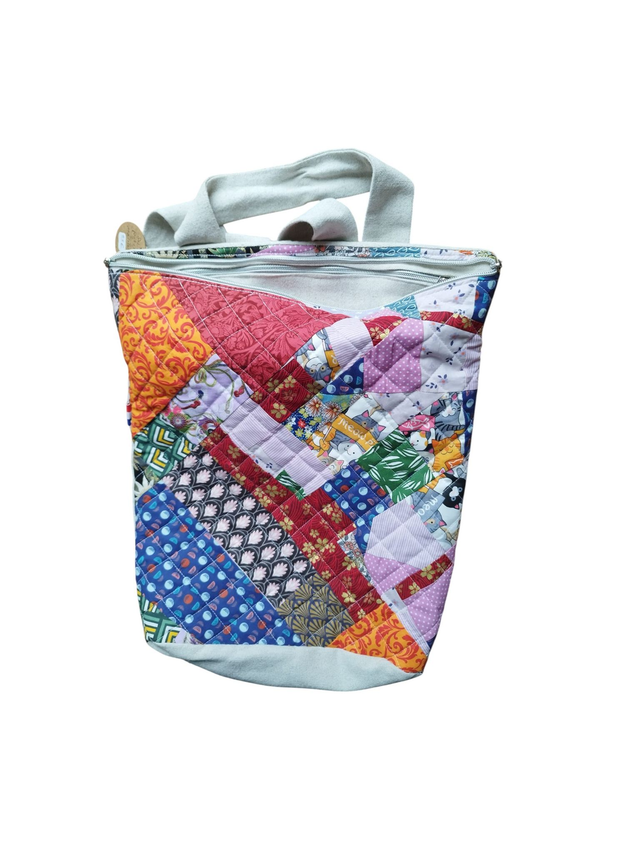Sac à dos en lin écru en patchwork multicolore matelassé