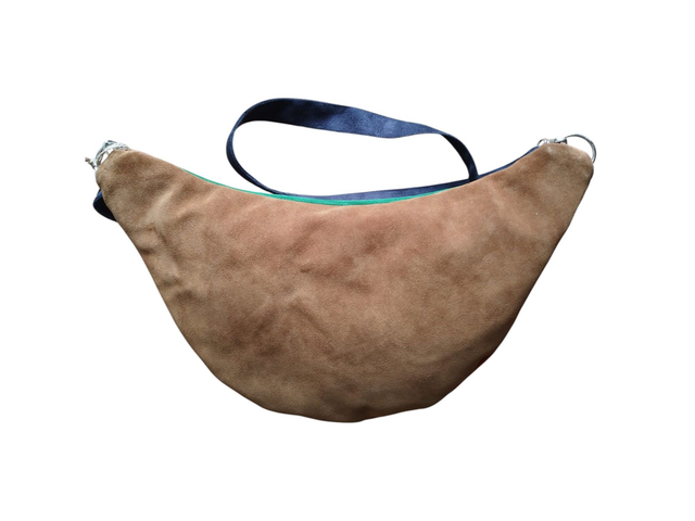 Magnifique sac banane en cuir de vachette rouge orangé, vert et marron qui sent bon le cuir !