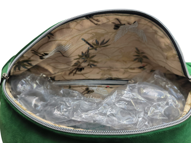 L'intérieur est un imprimé japonais bambou, avec une grande poche zippée de 17 cm
