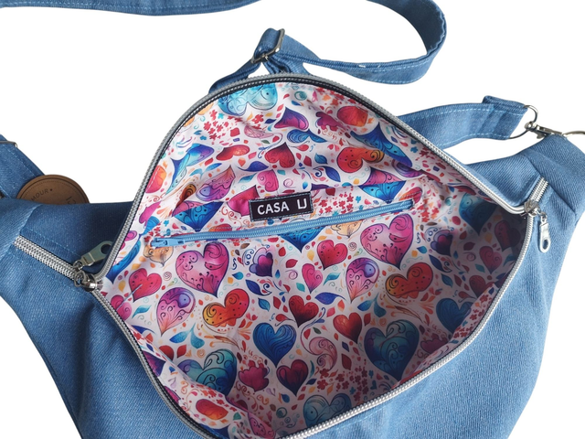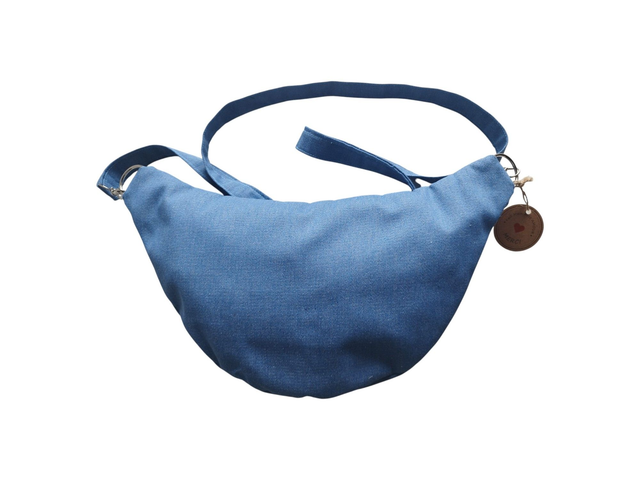 Sac banane en denim de coton bleu intérieur coeur