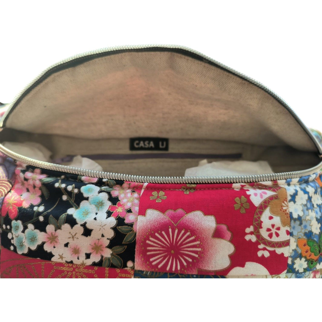 Magnifique sac banane original en patchwork de tissu d'Asie matelassé.