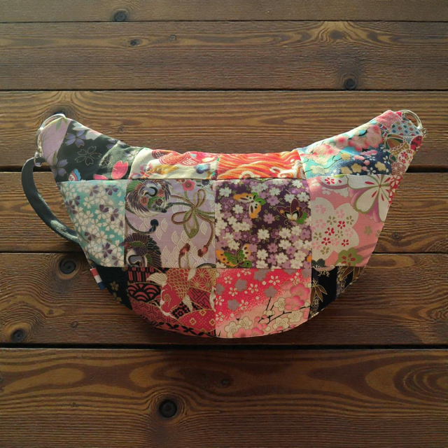 Sac banane en patchwork de tissus d'Asie et matelassé, bandoulière Alaska