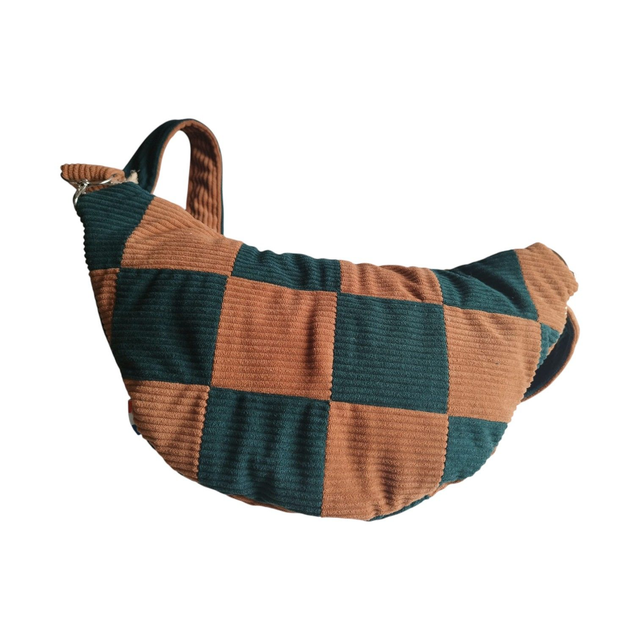 Sac banane en patchwork de velours côtelé et matelassé marron et vert intérieur liège