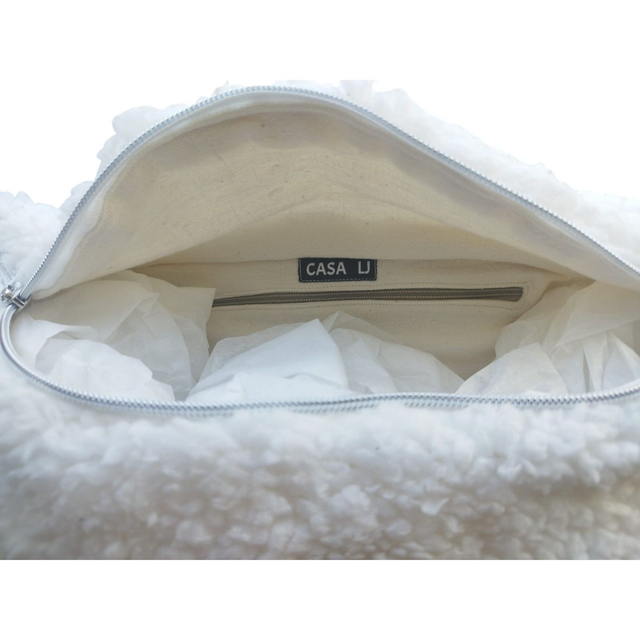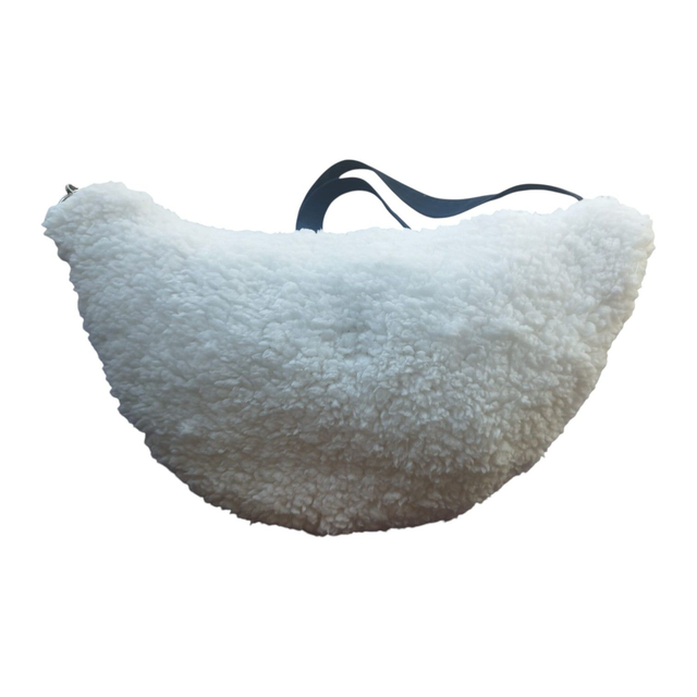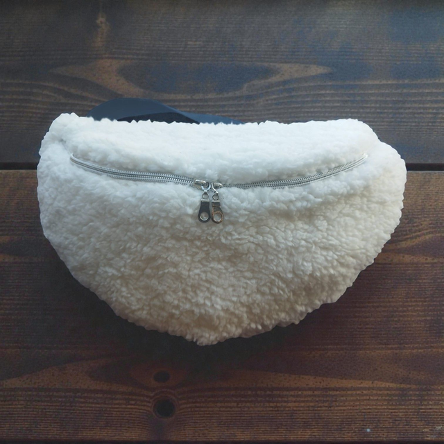 Sac banane très original dans un beau tissu moumoute blanc, avec un zip double curseurs