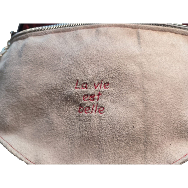 Très joli sac banane original et ultra léger en suédine Alaska (anti tâche) blanc crème avec une broderie "La vie est belle"
