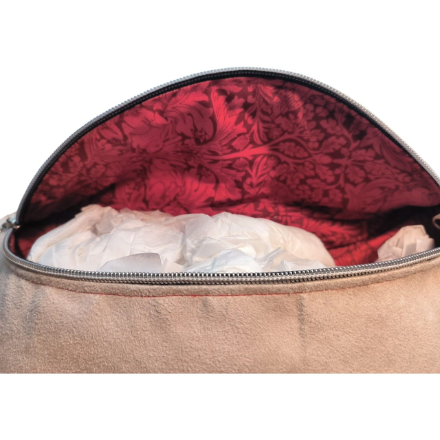L'intérieur est en coton imprimé nature couleur lie de vin, avec une grande poche zippée de 17 cm